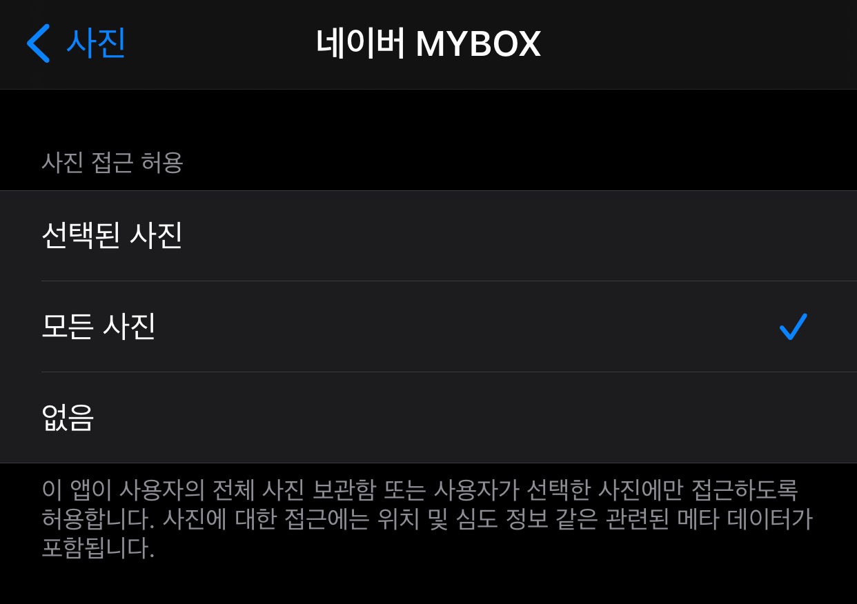 마이박스 사진올리기 아이폰 설정