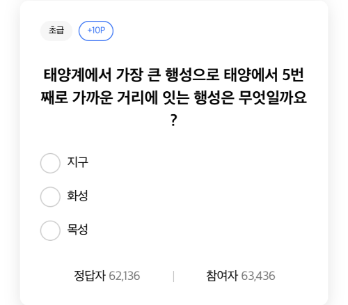 3태양계에서 가장 큰행성으로 태양에서 5번째로 가까운 거리에 있는 행성이 무엇인지 질문입니다.